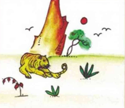 | 028期平特藏码图解释:图中的老虎看着自己的尾巴,解虎尾巴生肖兔或者牛,开兔16,开牛30。 |